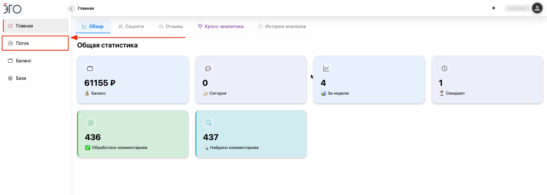 - Перейдите к вашему личному кабинету ЭГО и откройте Поток.