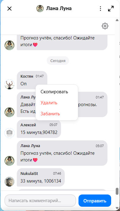Чат показал только первые 50 комментариев.